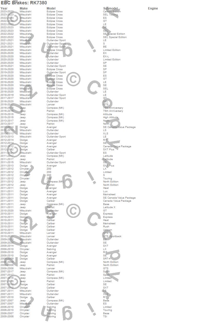 200, Avenger, Caliber, Compass, Lancer, Outlander, Outlander Sport, Patriot, Sebring, Chrysler, Dodge, Jeep, Mitsubishi, 2015, 2014, 2013, 2012, 2011, 2010, 2009 more…