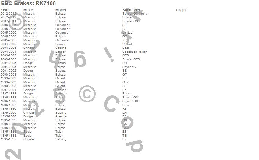 Avenger, Eclipse, Galant, Lancer, Outlander, Sebring, Stratus, Talon, Chrysler, Dodge, Eagle, Mitsubishi, 2012, 2011, 2010, 2009, 2008, 2007, 2006, 2005 more…