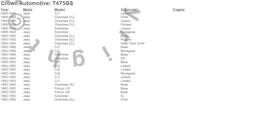 Crown Automotive Auto Transmission Gasket Set T4T5GS Features:
