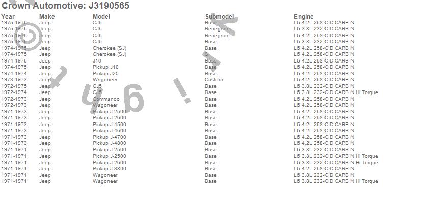 Cherokee (SJ), CJ5, CJ6, Commando, J-2500, J-2600, J-3800, J-4500, J-4600, J-4700, J-4800, J10, J20, Wagoneer, Jeep, 1975, 1974, 1973, 1972, 1971 more…