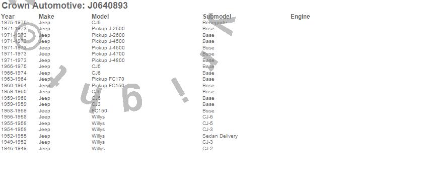 CJ-2A, CJ-3A, CJ-3B, CJ5, CJ6, FC150, FC170, J-2500, J-2600, J-4500, J-4600, J-4700, J-4800, M38, M38A1, Sedan Delivery, Jeep, 1975, 1974, 1973 more…