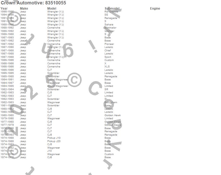 CJ5, CJ6, CJ7, Comanche, Grand Wagoneer, J10, J20, Scrambler, Wagoneer, Wrangler (YJ), Jeep, 1995, 1994, 1993, 1992, 1991, 1990, 1989, 1988, 1987 more…