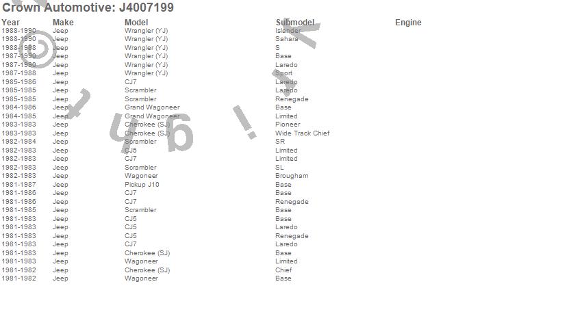 Cherokee (SJ), CJ5, CJ7, Grand Wagoneer, J10, Scrambler, Wagoneer, Wrangler (YJ), Jeep, 1990, 1989, 1988, 1987, 1986, 1985, 1984, 1983, 1982, 1981 more…