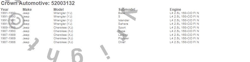 Crown Automotive is the premier manufacturer and distributor of quality replacement parts for Jeep® CJ™, Wrangler™, Cherokee™, Grand Cherokee™, Liberty™, and Commander™."From humble beginnings in 1963 in a small Boston storefront, Crown Automotive has consistently maintained its commitment to offering only quality parts and exceptional service. Today, with warehouses in Massachusetts, Georgia, Nevada, Spain, and the Czech Republic, totaling over 160,000 square feet, Crown Automotive continues to be the leader in quality replacement parts for Jeep® vehicles. With over 8,000 different parts in stock for Jeep® vehicles from 1942 on up, Crown has the largest stock of replacement parts for Jeep® vehicles, including factory-discontinued parts. In fact, many of the older Jeeps are still on (and off) the road thanks to Crown parts. The Crown line consists of axle, body, brake, clutch, cooling, driveline, electrical, engine, exhaust, fuel, steering, suspension, transmission and transfer case components. Crown Automotive also offers an exclusive line of component kits and accessory products. Because we know that Jeeps are driven harder than most other vehicles, we emphasize offering only quality parts. In fact, we test parts on Jeeps before distributing them to our dealers to insure that they meet our standards for quality. Crown also supports its entire line with a 12 month/12,000 mile warranty to insure our dealers and their customers of our commitment to offering quality parts. We know from experience that Jeep® owners would rather pay a little more for a good quality part that's backed by a strong guarantee. But we know that price is important as well. So, not only will you find Crown parts to be of exceptional quality, but you'll find them at a great price too.