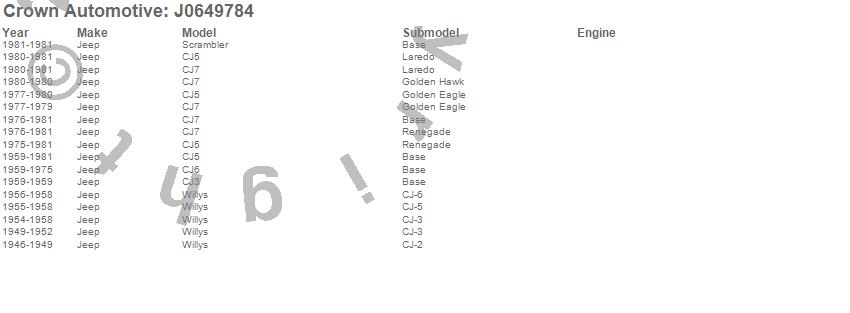 Crown Automotive is the premier manufacturer and distributor of quality replacement parts for Jeep® CJ™, Wrangler™, Cherokee™, Grand Cherokee™, Liberty™, and Commander™."From humble beginnings in 1963 in a small Boston storefront, Crown Automotive has consistently maintained its commitment to offering only quality parts and exceptional service. Today, with warehouses in Massachusetts, Georgia, Nevada, Spain, and the Czech Republic, totaling over 160,000 square feet, Crown Automotive continues to be the leader in quality replacement parts for Jeep® vehicles. With over 8,000 different parts in stock for Jeep® vehicles from 1942 on up, Crown has the largest stock of replacement parts for Jeep® vehicles, including factory-discontinued parts. In fact, many of the older Jeeps are still on (and off) the road thanks to Crown parts. The Crown line consists of axle, body, brake, clutch, cooling, driveline, electrical, engine, exhaust, fuel, steering, suspension, transmission and transfer case components. Crown Automotive also offers an exclusive line of component kits and accessory products. Because we know that Jeeps are driven harder than most other vehicles, we emphasize offering only quality parts. In fact, we test parts on Jeeps before distributing them to our dealers to insure that they meet our standards for quality. Crown also supports its entire line with a 12 month/12,000 mile warranty to insure our dealers and their customers of our commitment to offering quality parts. We know from experience that Jeep® owners would rather pay a little more for a good quality part that's backed by a strong guarantee. But we know that price is important as well. So, not only will you find Crown parts to be of exceptional quality, but you'll find them at a great price too.
