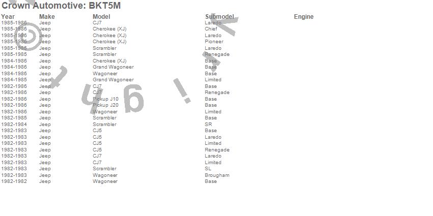 Crown Automotive Manual Trans. Gasket Case Set BKT5M Features: