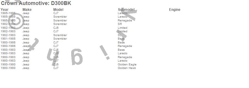Crown Automotive is the premier manufacturer and distributor of quality replacement parts for Jeep® CJ™, Wrangler™, Cherokee™, Grand Cherokee™, Liberty™, and Commander™."From humble beginnings in 1963 in a small Boston storefront, Crown Automotive has consistently maintained its commitment to offering only quality parts and exceptional service. Today, with warehouses in Massachusetts, Georgia, Nevada, Spain, and the Czech Republic, totaling over 160,000 square feet, Crown Automotive continues to be the leader in quality replacement parts for Jeep® vehicles. With over 8,000 different parts in stock for Jeep® vehicles from 1942 on up, Crown has the largest stock of replacement parts for Jeep® vehicles, including factory-discontinued parts. In fact, many of the older Jeeps are still on (and off) the road thanks to Crown parts. The Crown line consists of axle, body, brake, clutch, cooling, driveline, electrical, engine, exhaust, fuel, steering, suspension, transmission and transfer case components. Crown Automotive also offers an exclusive line of component kits and accessory products. Because we know that Jeeps are driven harder than most other vehicles, we emphasize offering only quality parts. In fact, we test parts on Jeeps before distributing them to our dealers to insure that they meet our standards for quality. Crown also supports its entire line with a 12 month/12,000 mile warranty to insure our dealers and their customers of our commitment to offering quality parts. We know from experience that Jeep® owners would rather pay a little more for a good quality part that's backed by a strong guarantee. But we know that price is important as well. So, not only will you find Crown parts to be of exceptional quality, but you'll find them at a great price too.