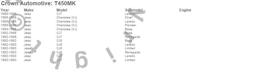 Crown Automotive Transmission Kit T450MK Features: