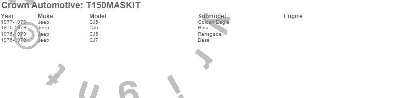 Crown Automotive Transmission Kit T150MASKIT Features: