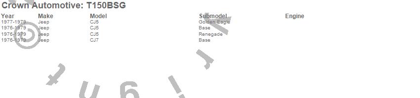 Crown Automotive Transmission Kit T150BSG Features:
