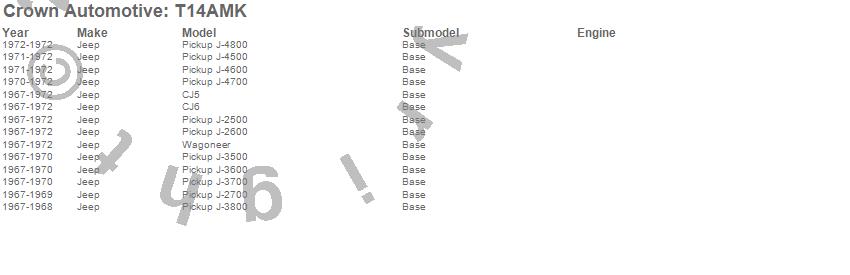 Crown Automotive is the premier manufacturer and distributor of quality replacement parts for Jeep® CJ™, Wrangler™, Cherokee™, Grand Cherokee™, Liberty™, and Commander™."From humble beginnings in 1963 in a small Boston storefront, Crown Automotive has consistently maintained its commitment to offering only quality parts and exceptional service. Today, with warehouses in Massachusetts, Georgia, Nevada, Spain, and the Czech Republic, totaling over 160,000 square feet, Crown Automotive continues to be the leader in quality replacement parts for Jeep® vehicles. With over 8,000 different parts in stock for Jeep® vehicles from 1942 on up, Crown has the largest stock of replacement parts for Jeep® vehicles, including factory-discontinued parts. In fact, many of the older Jeeps are still on (and off) the road thanks to Crown parts. The Crown line consists of axle, body, brake, clutch, cooling, driveline, electrical, engine, exhaust, fuel, steering, suspension, transmission and transfer case components. Crown Automotive also offers an exclusive line of component kits and accessory products. Because we know that Jeeps are driven harder than most other vehicles, we emphasize offering only quality parts. In fact, we test parts on Jeeps before distributing them to our dealers to insure that they meet our standards for quality. Crown also supports its entire line with a 12 month/12,000 mile warranty to insure our dealers and their customers of our commitment to offering quality parts. We know from experience that Jeep® owners would rather pay a little more for a good quality part that's backed by a strong guarantee. But we know that price is important as well. So, not only will you find Crown parts to be of exceptional quality, but you'll find them at a great price too.