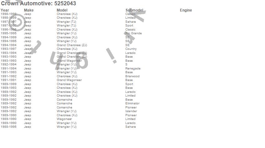 Crown Automotive is the premier manufacturer and distributor of quality replacement parts for Jeep® CJ™, Wrangler™, Cherokee™, Grand Cherokee™, Liberty™, and Commander™."From humble beginnings in 1963 in a small Boston storefront, Crown Automotive has consistently maintained its commitment to offering only quality parts and exceptional service. Today, with warehouses in Massachusetts, Georgia, Nevada, Spain, and the Czech Republic, totaling over 160,000 square feet, Crown Automotive continues to be the leader in quality replacement parts for Jeep® vehicles. With over 8,000 different parts in stock for Jeep® vehicles from 1942 on up, Crown has the largest stock of replacement parts for Jeep® vehicles, including factory-discontinued parts. In fact, many of the older Jeeps are still on (and off) the road thanks to Crown parts. The Crown line consists of axle, body, brake, clutch, cooling, driveline, electrical, engine, exhaust, fuel, steering, suspension, transmission and transfer case components. Crown Automotive also offers an exclusive line of component kits and accessory products. Because we know that Jeeps are driven harder than most other vehicles, we emphasize offering only quality parts. In fact, we test parts on Jeeps before distributing them to our dealers to insure that they meet our standards for quality. Crown also supports its entire line with a 12 month/12,000 mile warranty to insure our dealers and their customers of our commitment to offering quality parts. We know from experience that Jeep® owners would rather pay a little more for a good quality part that's backed by a strong guarantee. But we know that price is important as well. So, not only will you find Crown parts to be of exceptional quality, but you'll find them at a great price too.