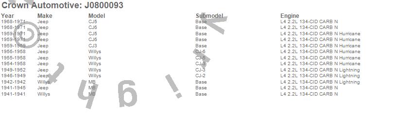 Crown Automotive is the premier manufacturer and distributor of quality replacement parts for Jeep® CJ™, Wrangler™, Cherokee™, Grand Cherokee™, Liberty™, and Commander™."From humble beginnings in 1963 in a small Boston storefront, Crown Automotive has consistently maintained its commitment to offering only quality parts and exceptional service. Today, with warehouses in Massachusetts, Georgia, Nevada, Spain, and the Czech Republic, totaling over 160,000 square feet, Crown Automotive continues to be the leader in quality replacement parts for Jeep® vehicles. With over 8,000 different parts in stock for Jeep® vehicles from 1942 on up, Crown has the largest stock of replacement parts for Jeep® vehicles, including factory-discontinued parts. In fact, many of the older Jeeps are still on (and off) the road thanks to Crown parts. The Crown line consists of axle, body, brake, clutch, cooling, driveline, electrical, engine, exhaust, fuel, steering, suspension, transmission and transfer case components. Crown Automotive also offers an exclusive line of component kits and accessory products. Because we know that Jeeps are driven harder than most other vehicles, we emphasize offering only quality parts. In fact, we test parts on Jeeps before distributing them to our dealers to insure that they meet our standards for quality. Crown also supports its entire line with a 12 month/12,000 mile warranty to insure our dealers and their customers of our commitment to offering quality parts. We know from experience that Jeep® owners would rather pay a little more for a good quality part that's backed by a strong guarantee. But we know that price is important as well. So, not only will you find Crown parts to be of exceptional quality, but you'll find them at a great price too.