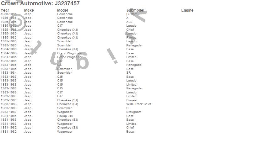 Cherokee (SJ), Cherokee (XJ), CJ5, CJ7, Comanche, Grand Wagoneer, J10, Scrambler, Wagoneer, Jeep, 1986, 1985, 1984, 1983, 1982, 1981 more…