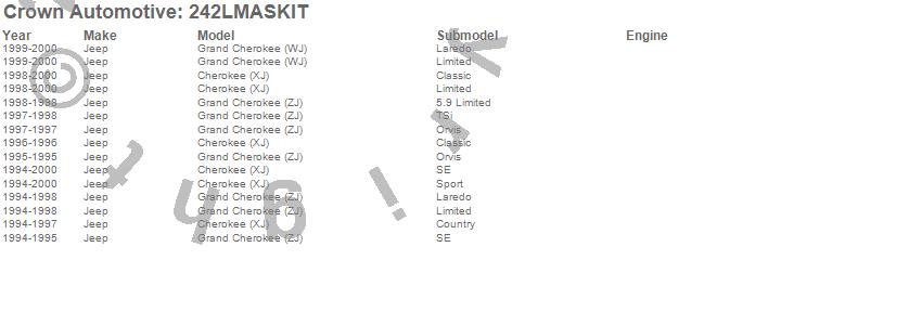 Crown Automotive Transfer Case Gasket And Seal Kit 242LMASKIT Features: