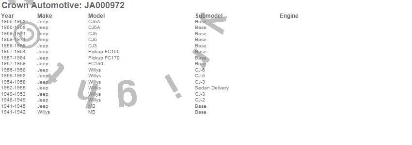 Crown Automotive is the premier manufacturer and distributor of quality replacement parts for Jeep® CJ™, Wrangler™, Cherokee™, Grand Cherokee™, Liberty™, and Commander™."From humble beginnings in 1963 in a small Boston storefront, Crown Automotive has consistently maintained its commitment to offering only quality parts and exceptional service. Today, with warehouses in Massachusetts, Georgia, Nevada, Spain, and the Czech Republic, totaling over 160,000 square feet, Crown Automotive continues to be the leader in quality replacement parts for Jeep® vehicles. With over 8,000 different parts in stock for Jeep® vehicles from 1942 on up, Crown has the largest stock of replacement parts for Jeep® vehicles, including factory-discontinued parts. In fact, many of the older Jeeps are still on (and off) the road thanks to Crown parts. The Crown line consists of axle, body, brake, clutch, cooling, driveline, electrical, engine, exhaust, fuel, steering, suspension, transmission and transfer case components. Crown Automotive also offers an exclusive line of component kits and accessory products. Because we know that Jeeps are driven harder than most other vehicles, we emphasize offering only quality parts. In fact, we test parts on Jeeps before distributing them to our dealers to insure that they meet our standards for quality. Crown also supports its entire line with a 12 month/12,000 mile warranty to insure our dealers and their customers of our commitment to offering quality parts. We know from experience that Jeep® owners would rather pay a little more for a good quality part that's backed by a strong guarantee. But we know that price is important as well. So, not only will you find Crown parts to be of exceptional quality, but you'll find them at a great price too.