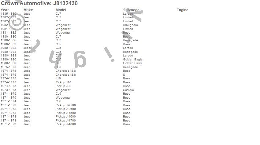 Cherokee (SJ), CJ5, CJ6, CJ7, J-2500, J-2600, J-4500, J-4600, J-4700, J-4800, J10, J20, Wagoneer, Jeep, 1986, 1985, 1984, 1983, 1982, 1981 more…