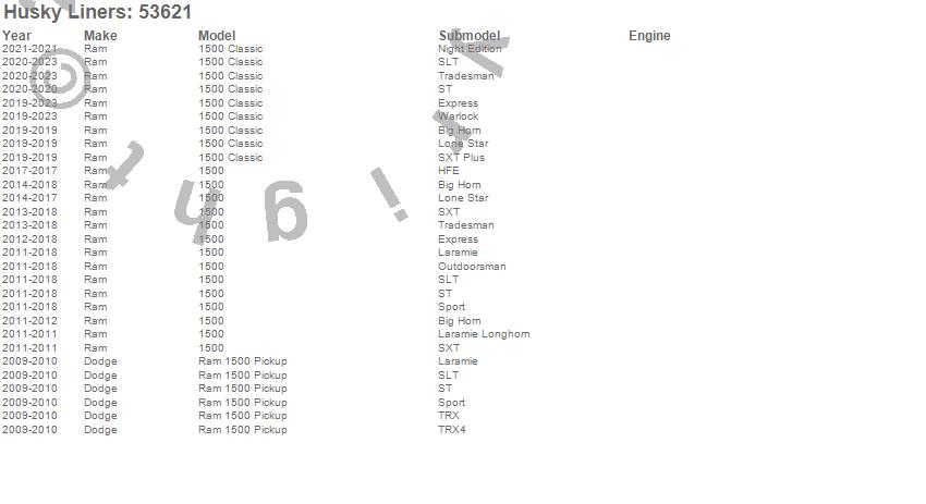 Below is an abreviated list of applications for the X-act Contour Floor Liner.