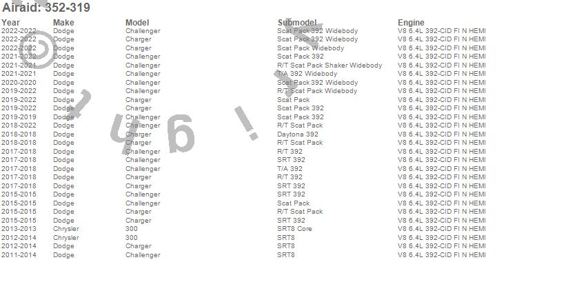 Below is an abreviated list of applications for the AIRAID Cold Air Dam Intake System.