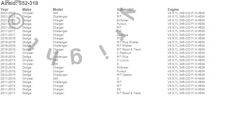 Below is an abreviated list of applications for the AIRAID Cold Air Dam Intake System.