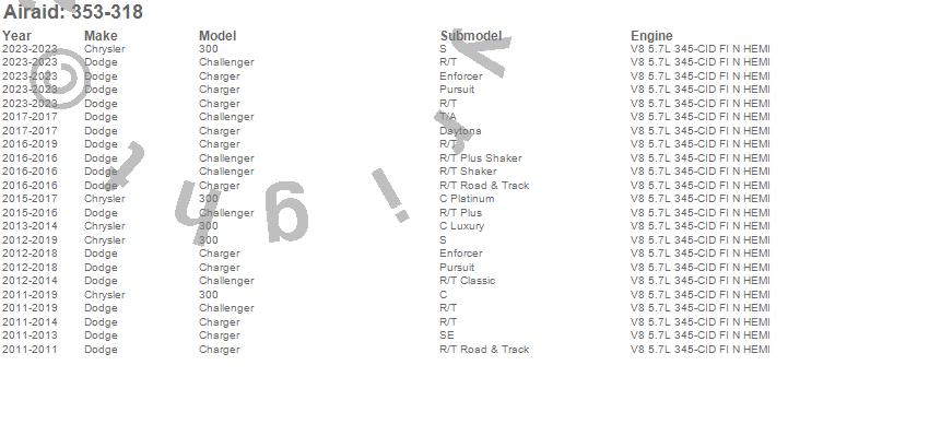 Below is an abreviated list of applications for the AIRAID Cold Air Dam Intake System.