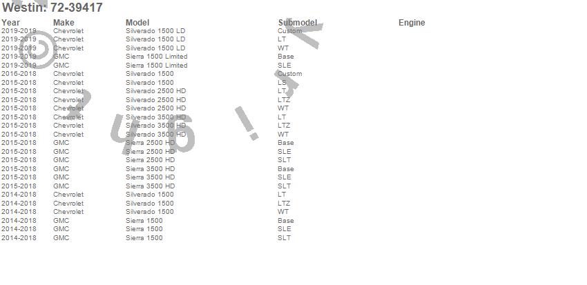 Below is an abreviated list of applications for the Wade In-Channel Wind Deflectors.