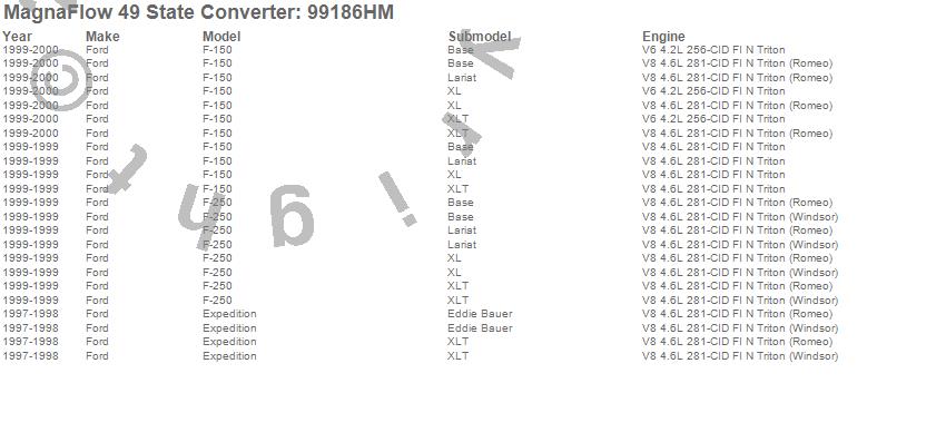 Below is an abreviated list of applications for the Heavy Metal Series Universal Catalytic Converter.
