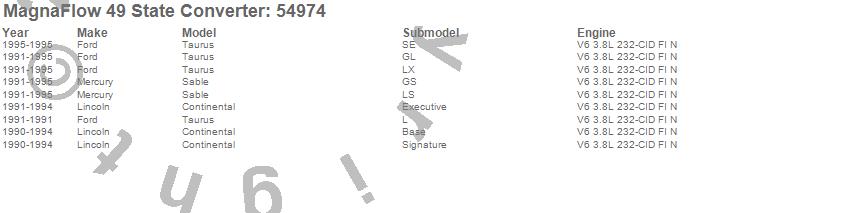 Below is an abreviated list of applications for the 54900 Series OEM Style Catalytic Converter.