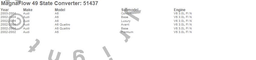 Below is an abreviated list of applications for the Direct Fit Catalytic Converter.