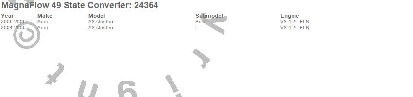 Below is an abreviated list of applications for the Direct Fit Catalytic Converter.