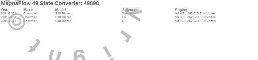 Below is an abreviated list of applications for the Direct Fit Catalytic Converter.