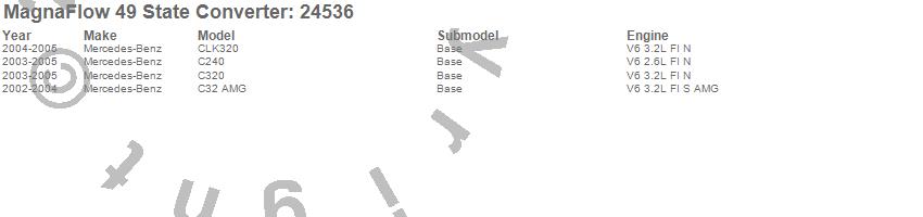 Below is an abreviated list of applications for the Direct Fit Catalytic Converter.
