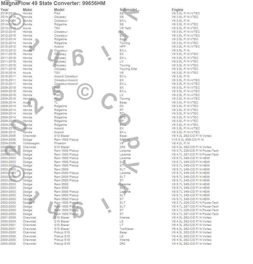 Below is an abreviated list of applications for the Heavy Metal Series Universal Catalytic Converter.
