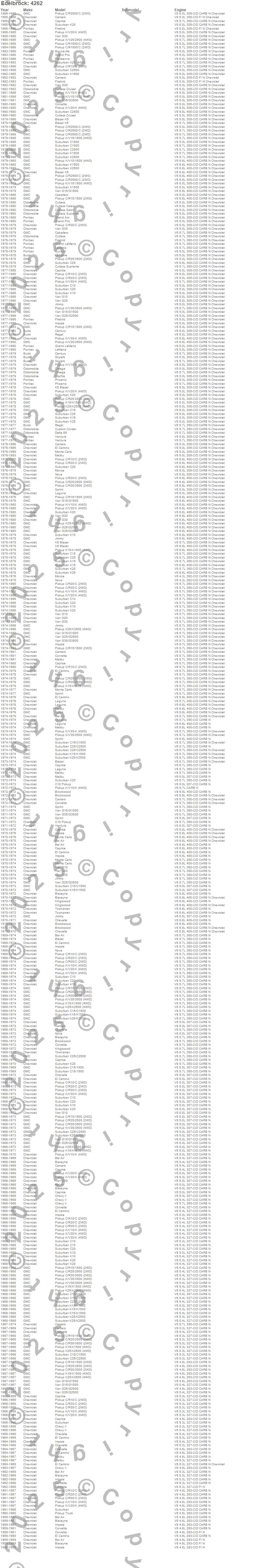Bel Air, Biscayne, Blazer, Blazer K5, Bonneville, Brookwood, C10 Pickup, C10 Suburban, C15 Suburban, C15/C1500, C15/C1500 Suburban, C1500, C1500 Suburban, C20 Pickup, C20 Suburban, C25 Suburban, C25/C2500 Pickup, C25/C2500 Suburban, C2500 Pickup, C2500 Suburban more...
