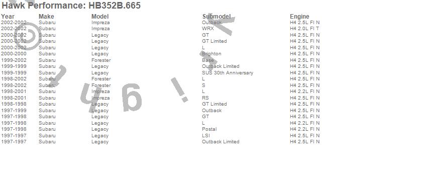 Below is an abreviated list of applications for the Disc Brake Pad.