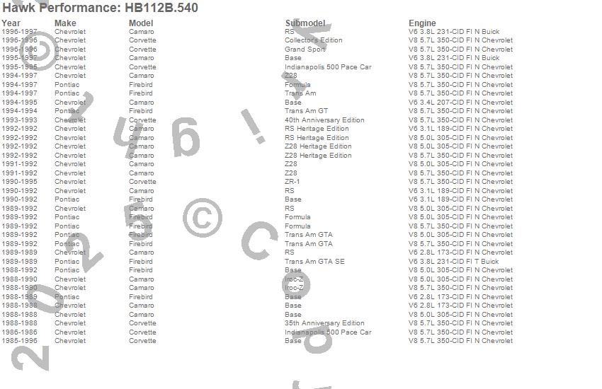 Hawk Performance Disc Brake Pad # HB112B.540 - High Performance Street 5.0 w/0.540 Thickness
