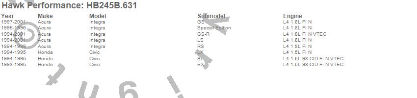 Hawk Performance Disc Brake Pad # HB245B.631 - High Performance Street 5.0 w/0.631 Thickness
