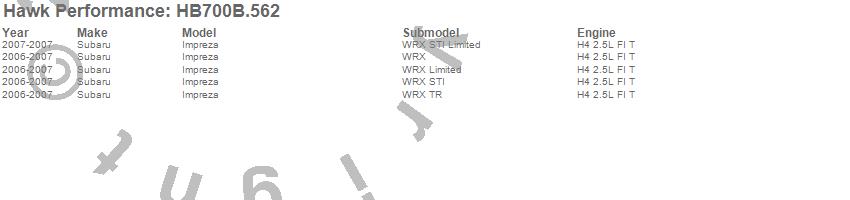 Hawk Performance Disc Brake Pad HB700B.562 Features:
