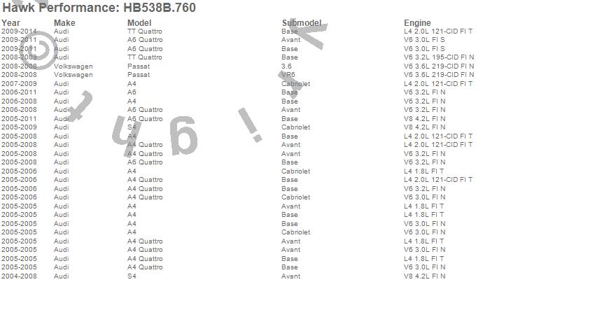 Below is an abreviated list of applications for the Disc Brake Pad.