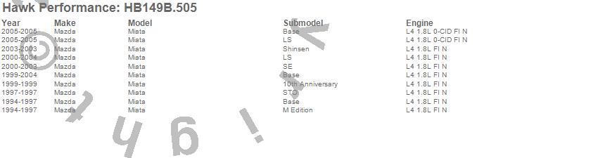 Below is an abreviated list of applications for the Disc Brake Pad.