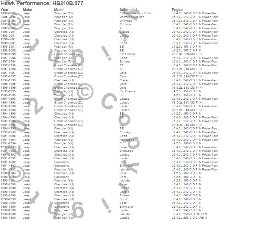 Below is an abreviated list of applications for the Disc Brake Pad.