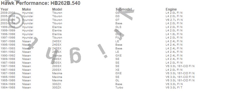 Hawk Performance Disc Brake Pad # HB262B.540 - High Performance Street 5.0 w/0.540 Thickness