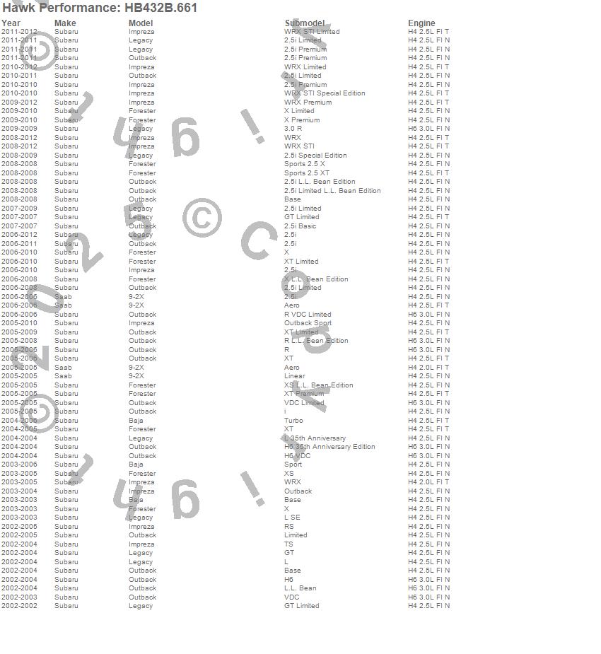Hawk Performance Disc Brake Pad # HB432B.661 - High Performance Street 5.0 w/0.661 Thickness