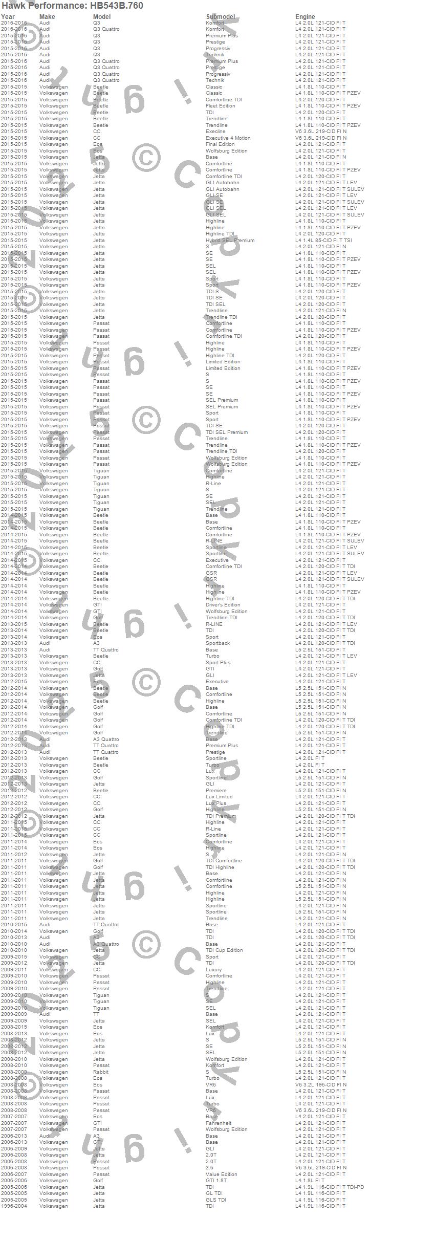 Hawk Performance Disc Brake Pad # HB543B.760 - High Performance Street 5.0 w/0.760 Thickness - FMSI Plate #D1107