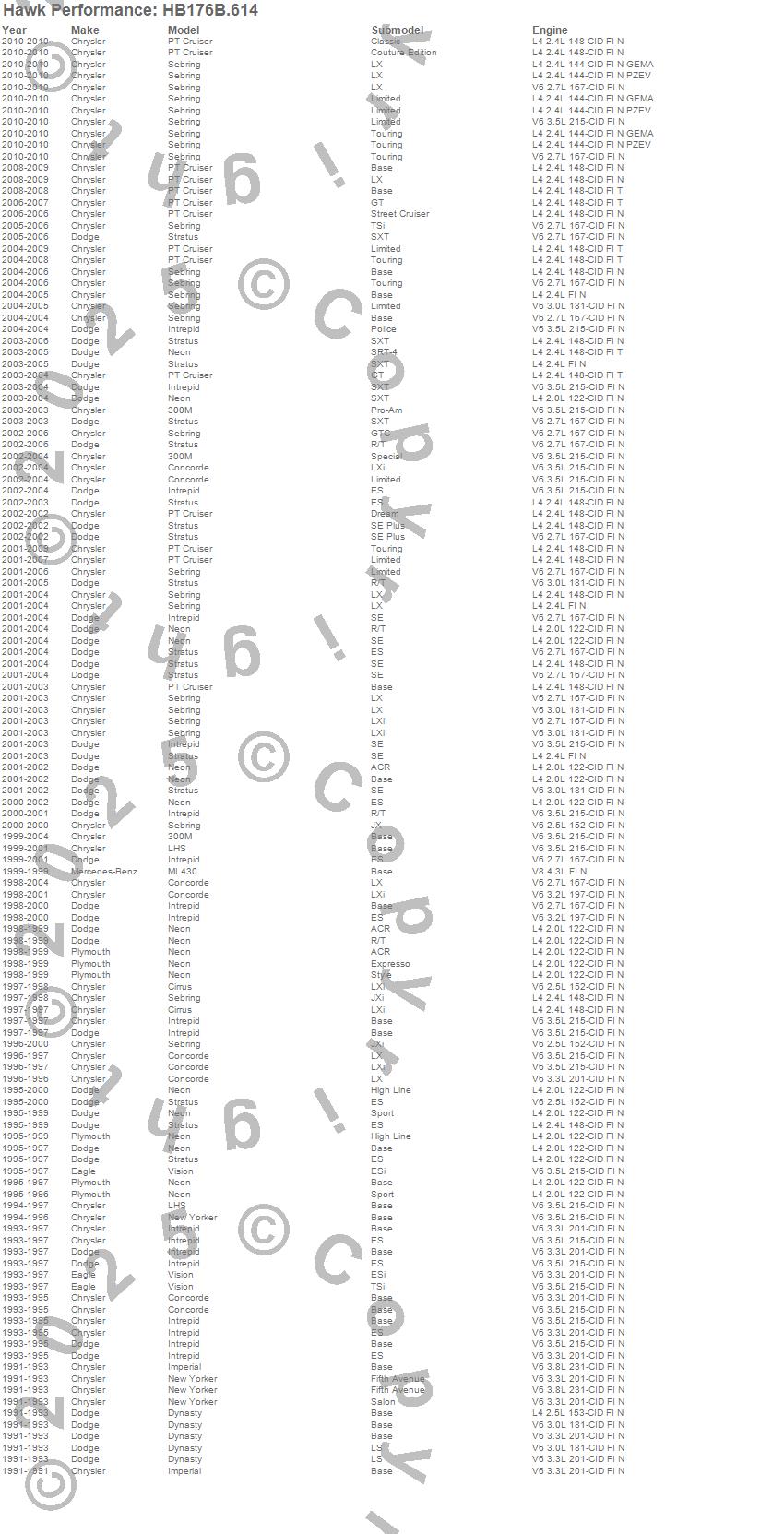 Hawk Performance Disc Brake Pad # HB176B.614 - High Performance Street 5.0 w/0.614 Thickness