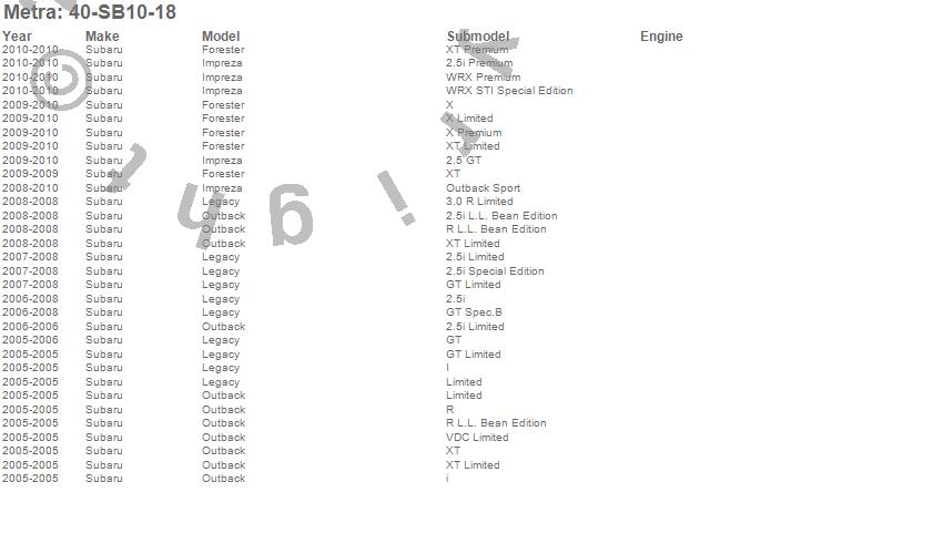 Forester, Impreza, Legacy, Outback, Subaru, 2010, 2009, 2008, 2007, 2006, 2005 more…