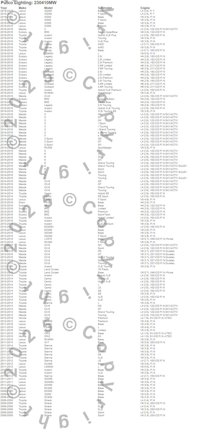Below is an abreviated list of applications for the HID Replacement Bulb.