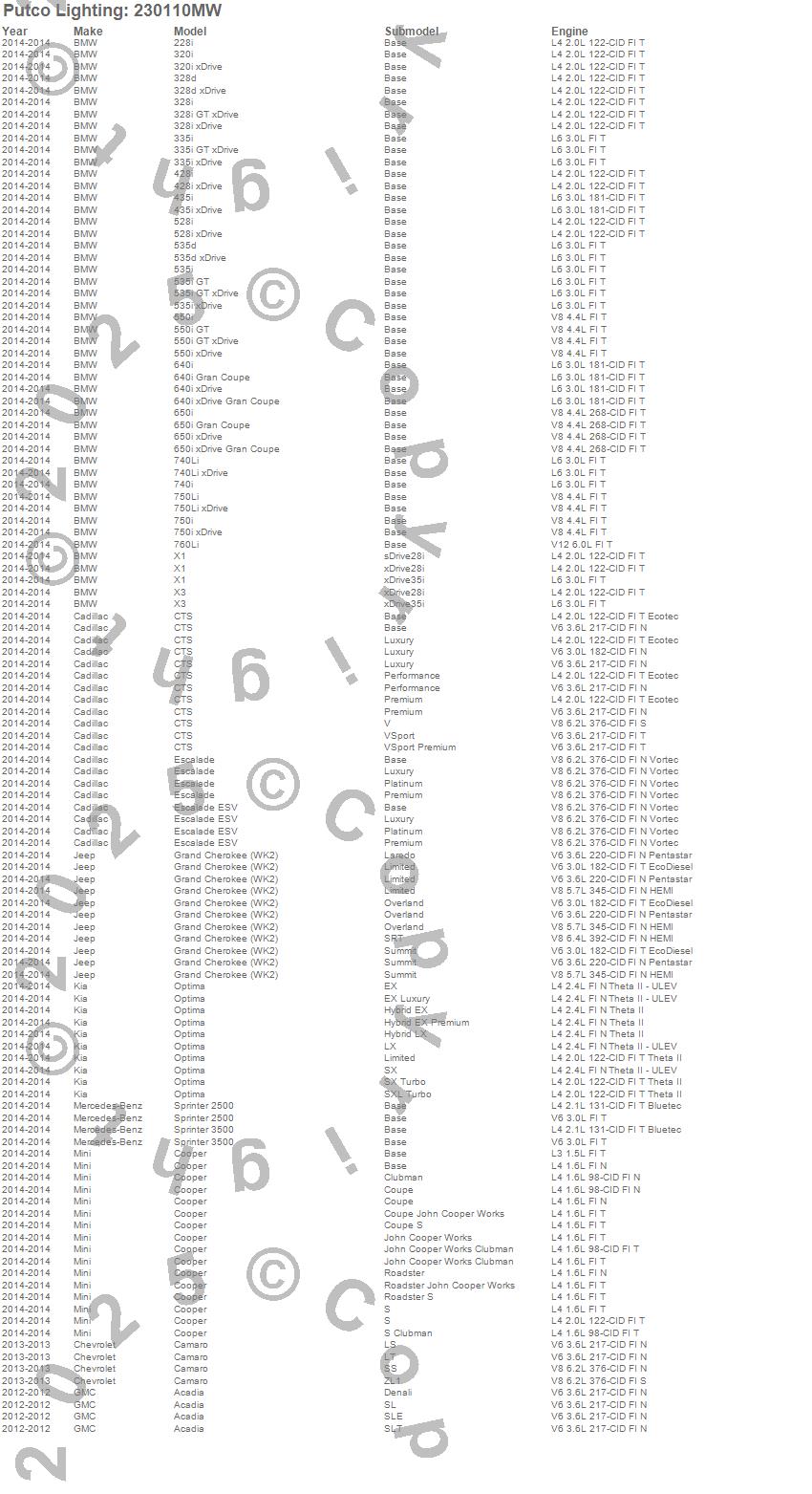 Below is an abreviated list of applications for the HID Replacement Bulb.
