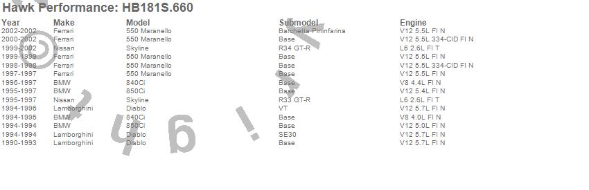 Below is an abreviated list of applications for the Disc Brake Pad.