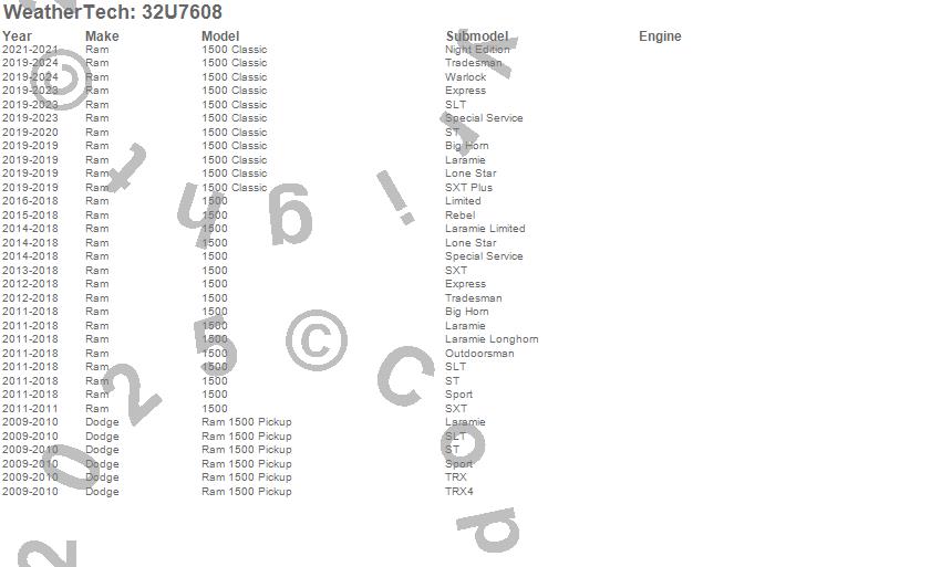 Below is an abreviated list of applications for the Underliner Bedliner.